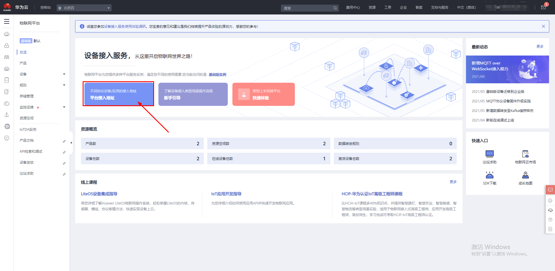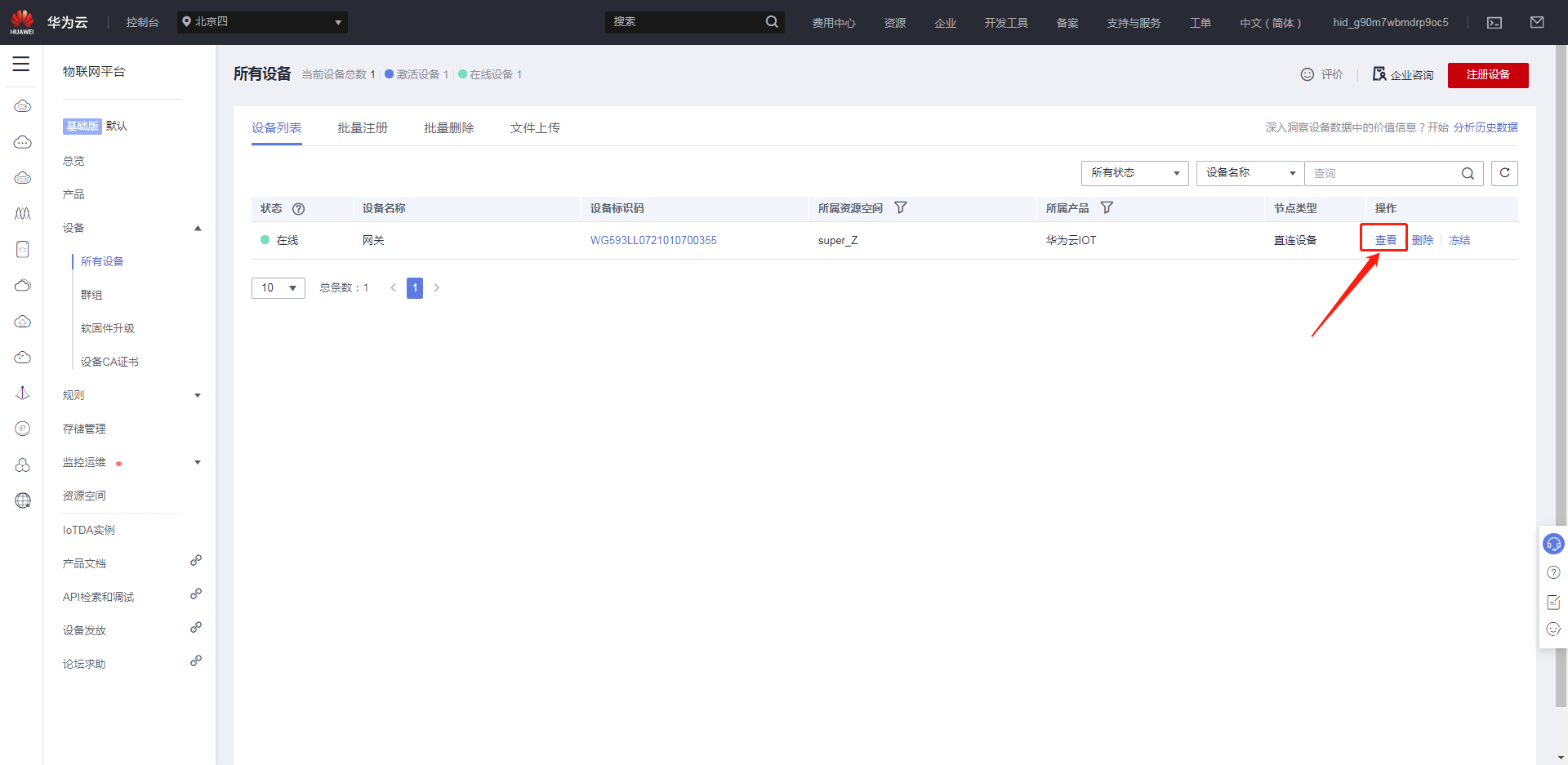 華為云地址:https://console.huaweicloud.com/iotdm/?region=cn-north-4#/dm-portal/home