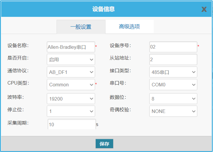 配置協(xié)議、通信參數(shù)和采集周期