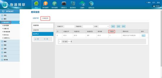 等待右下角彈出成功提示框后,點(diǎn)擊“數(shù)采信息”->“變量數(shù)據(jù)”,即可在“變量值”一列查看采集結(jié)果。