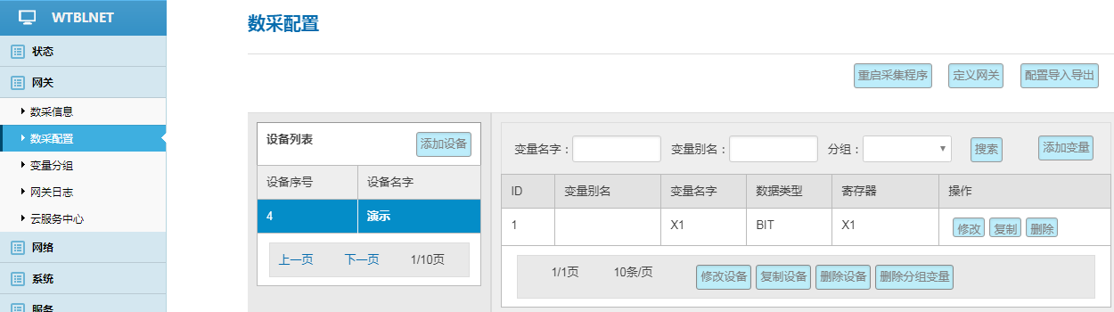 網(wǎng)關(guān)---數(shù)采配置---添加設備---添加變量---重啟采集程序并生效新的配置