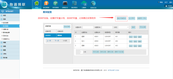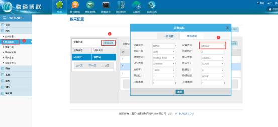 3、進入網(wǎng)關---數(shù)采配置界面,設置網(wǎng)關序列號及相關信息。