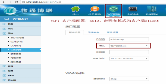 模式:客戶端Client(通過WiFi上外網(wǎng)請(qǐng)選擇client模式,如果是共享WiFi給其他設(shè)備請(qǐng)選擇AP模式)