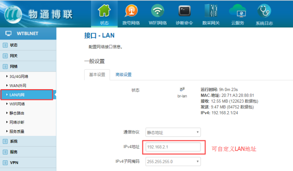 網(wǎng)絡(luò)---可選WIFI網(wǎng)絡(luò)、3/4G網(wǎng)絡(luò)(需要在網(wǎng)關(guān)通電前插入手機(jī)SIM卡,默認(rèn)已開啟3/4G網(wǎng)絡(luò))、WAN外網(wǎng)。
