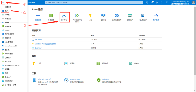 點(diǎn)擊進(jìn)入IoT中心,初次試用需創(chuàng)建IoT中心。