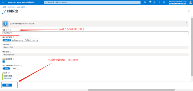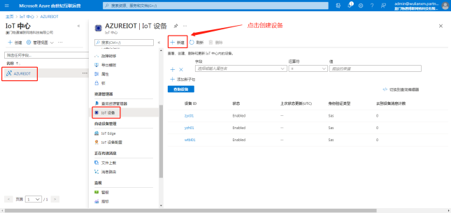 選擇IoT設(shè)備,點(diǎn)擊”新建”,創(chuàng)建一個(gè)IoT設(shè)備。