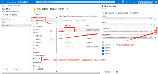 回到web云平臺(tái)IoT中心頁(yè)面,通過(guò)共享訪問(wèn)策略頁(yè)面獲取連接信息