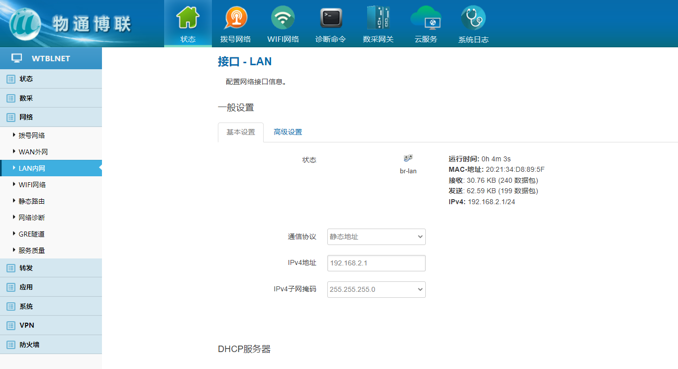 下載中心 視頻中心 常見問題 售后服務 工業(yè)網(wǎng)關(guān) 設(shè)備快線 數(shù)據(jù)云平臺 聯(lián)網(wǎng)設(shè)備 問答百科 如何修改工業(yè)智能網(wǎng)關(guān)的LAN口IP地址? 時間:2022-10-26 09:06:09 點擊:4915 關(guān)鍵詞:工業(yè)智能網(wǎng)關(guān),LAN口 問題:如何修改工業(yè)智能網(wǎng)關(guān)的LAN口IP地址? 回答: (1)電腦直連網(wǎng)關(guān),確保電腦與網(wǎng)關(guān)處于同網(wǎng)段或者自動獲取 瀏覽器里面輸入192.168.2.1 (2)登陸網(wǎng)關(guān)配置界面 默認用戶名/密碼:admin/123456 (2)選擇網(wǎng)絡——Lan內(nèi)網(wǎng)——更改IPV4地址、子網(wǎng)掩碼,保存應用 (3)注意電腦本機IP地址是否與更改地址處于同網(wǎng)段(自動獲取需重新拔 插網(wǎng)線) (4)瀏覽器輸入更改后的IP地址登陸到網(wǎng)關(guān)配置界面即修改成功 上一篇:工業(yè)智能網(wǎng)關(guān)和DTU有什么區(qū)別嗎? 下一篇: 工業(yè)智能網(wǎng)關(guān)需要另外配4G路由器嗎?