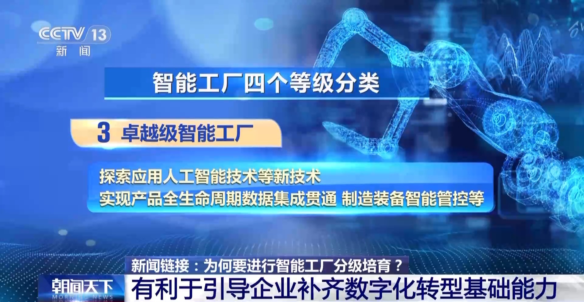 我國將智能工廠分成四個級別,包括3萬余家基礎(chǔ)級智能工廠、1200余家先進級智能工廠、230余家卓越級智能工廠,還有正在培育的領(lǐng)航級智能工廠。最新數(shù)據(jù)顯示,目前我國已建成3萬多家基礎(chǔ)級智能工廠,覆蓋80%制造業(yè)大類。