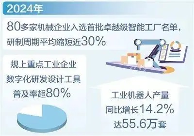 近年來,我國高端裝備智能化生產(chǎn)取得新進展。中國機械工業(yè)聯(lián)合會數(shù)據(jù)顯示:2024年有80多家機械企業(yè)入選我國首批卓越級智能工廠名單,研制周期平均縮短近30%;規(guī)上重點工業(yè)企業(yè)數(shù)字化研發(fā)設計工具普及率超過80%。