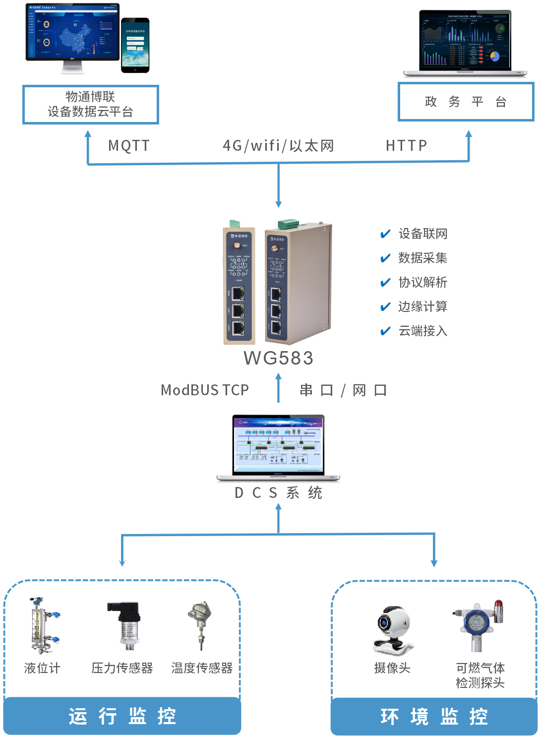 PLC數(shù)采網(wǎng)關(guān)的物聯(lián)網(wǎng)解決方案,旨在解決傳統(tǒng)管理模式的弊端。通過(guò)與反應(yīng)釜的PLC、DCS等設(shè)備連接,實(shí)時(shí)采集溫度、壓力、液位、攪拌速度等關(guān)鍵運(yùn)行數(shù)據(jù),并利用5G、4G、WiFi、以太網(wǎng)等通信網(wǎng)絡(luò),將數(shù)據(jù)快速、穩(wěn)定地上傳至云平臺(tái)或上位機(jī)。同時(shí)實(shí)現(xiàn)對(duì)反應(yīng)釜運(yùn)行狀態(tài)的實(shí)時(shí)監(jiān)測(cè)、故障預(yù)警與告警,為企業(yè)提供全面、精準(zhǔn)的設(shè)備管理服務(wù),保障反應(yīng)釜安全、高效運(yùn)行。