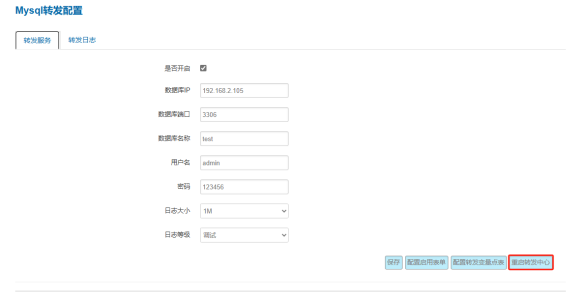 配置完成后,點(diǎn)擊“重啟轉(zhuǎn)發(fā)中心”,使配置生效