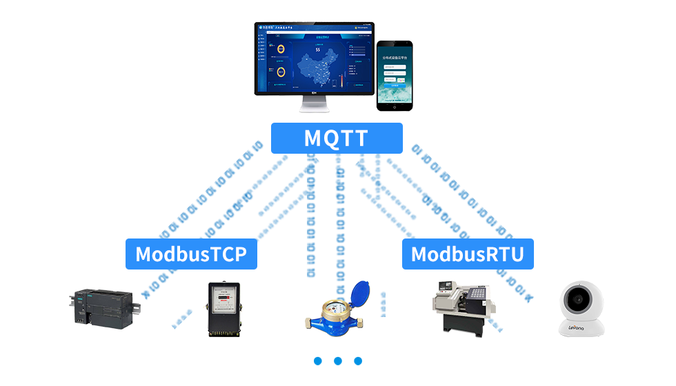 支持采集各種Modbus-TCP和Modbus-RTU協(xié)議的設(shè)備數(shù)據(jù),并將數(shù)據(jù)通過MQTT協(xié)議上傳到云平臺(tái)