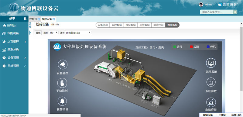 物通博聯(lián)處理垃圾設(shè)備物聯(lián)網(wǎng)為垃圾處理設(shè)備廠家實(shí)現(xiàn)全球設(shè)備統(tǒng)籌,打造一個(gè)安全監(jiān)控、設(shè)備遠(yuǎn)程維護(hù)和管理、設(shè)備遠(yuǎn)程調(diào)試、配件管理、故障告警為一體的垃圾處理設(shè)備綜合服務(wù)平臺(tái),實(shí)現(xiàn)從“生產(chǎn)型制造”向“服務(wù)型制造”的轉(zhuǎn)型,提升生產(chǎn)效率、產(chǎn)品質(zhì)量和技術(shù)支持水平。