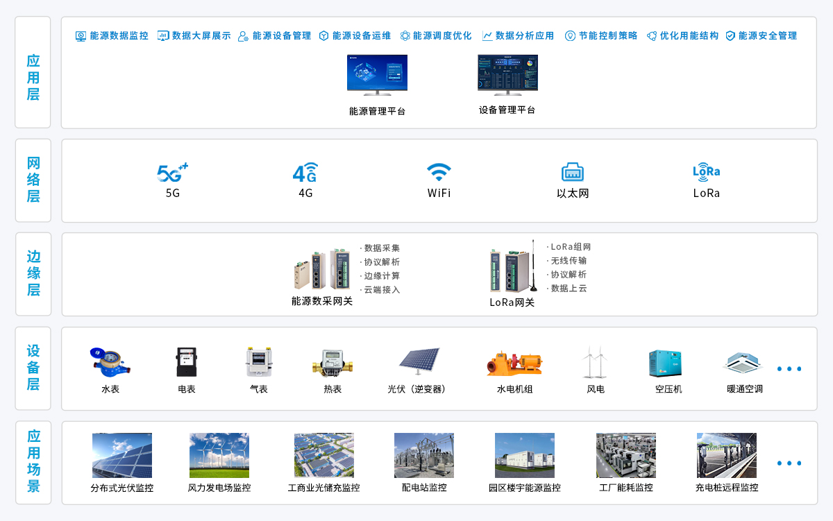 適用于工廠、園區(qū)、小區(qū)、電力、樓宇、公共設(shè)施等多種用能場景。