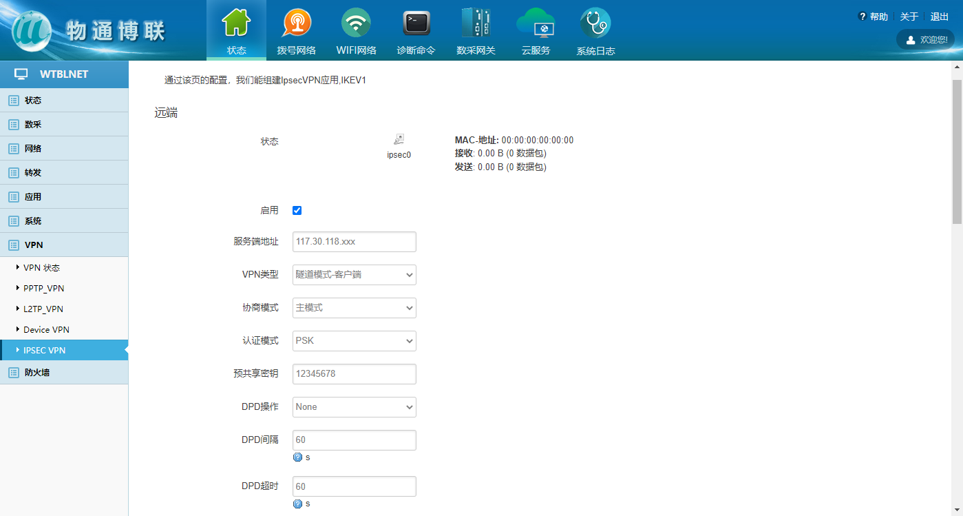物通博聯(lián)網(wǎng)關(guān)支持IPSEC VPN,幫助企業(yè)構(gòu)建高安全性的數(shù)據(jù)采集系統(tǒng)